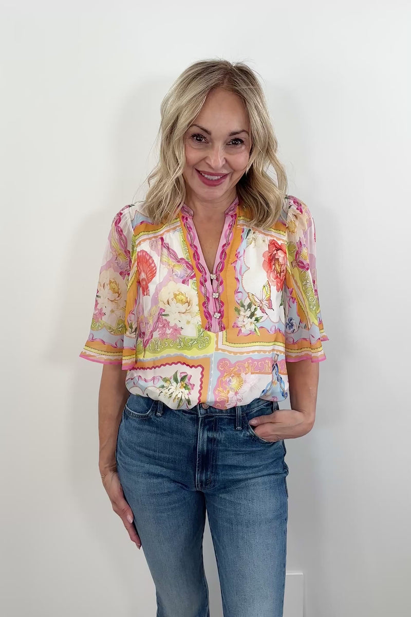 Hale Bob Soleil Flutter Sleeve Blouse